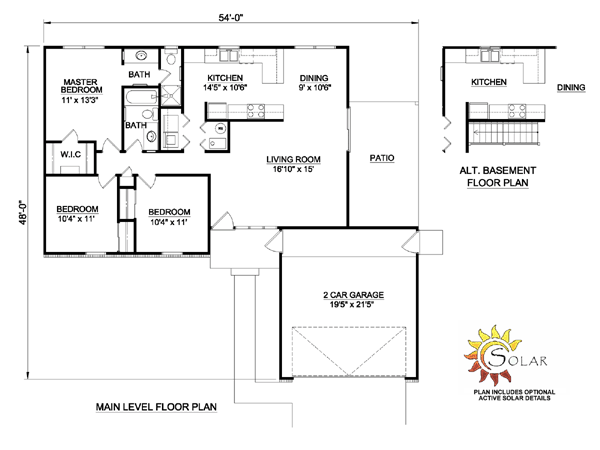 House Plan 94427 - Ranch Style with 1250 Sq Ft, 3 Bed, 2 Bath | COOLhouseplans.com