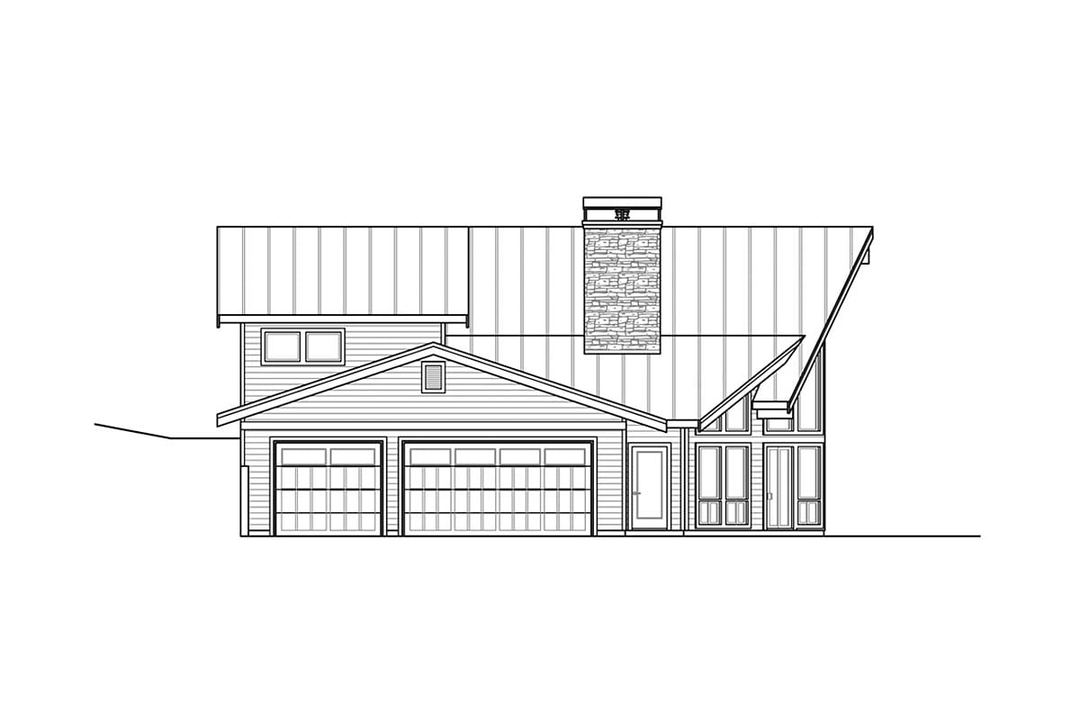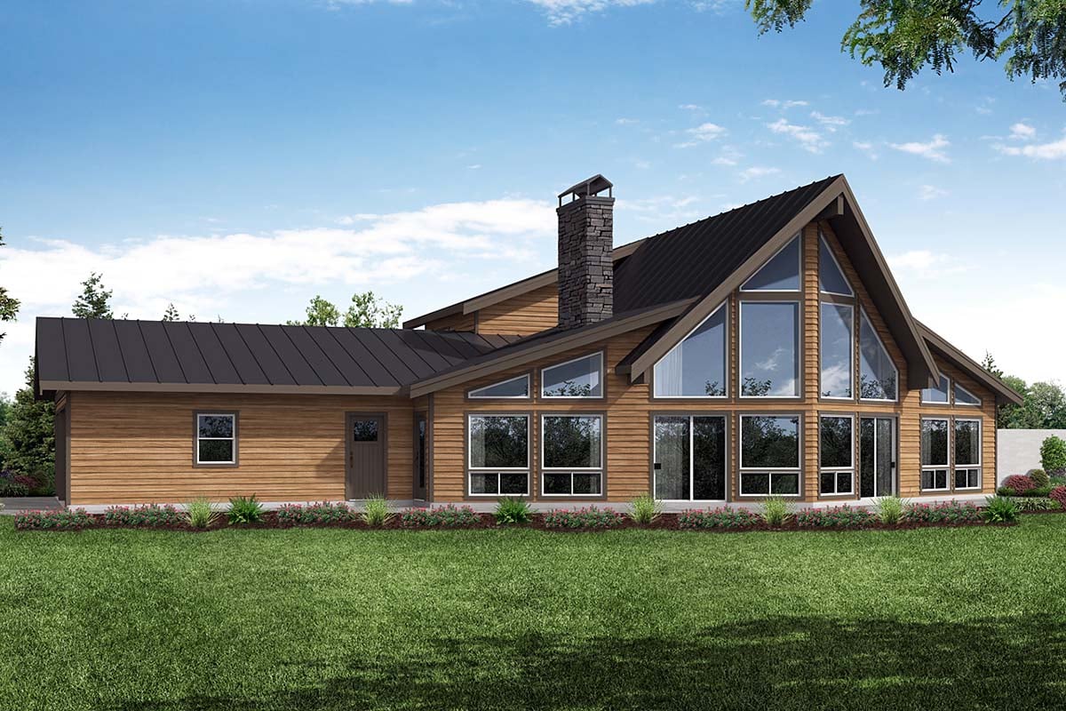 A-Frame, Country House Plan 41378 with 2 Beds, 2 Baths, 3 Car Garage Rear Elevation