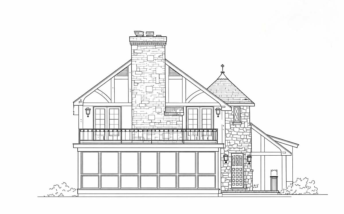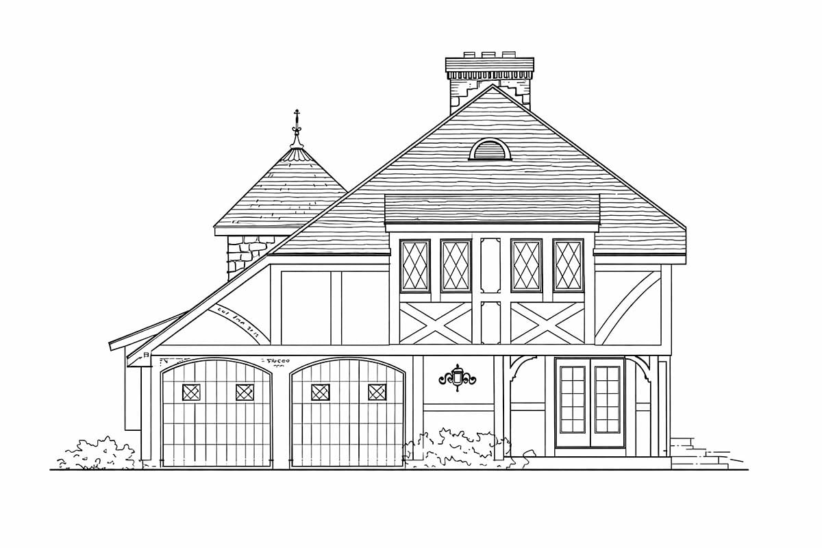 European, Tudor House Plan 43040 with 3 Beds, 3 Baths, 2 Car Garage Rear Elevation