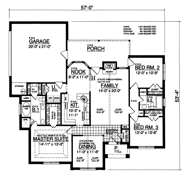 House Plan 77756 - Traditional Style with 1647 Sq Ft, 3 Bed, 2 Ba | COOLhouseplans.com