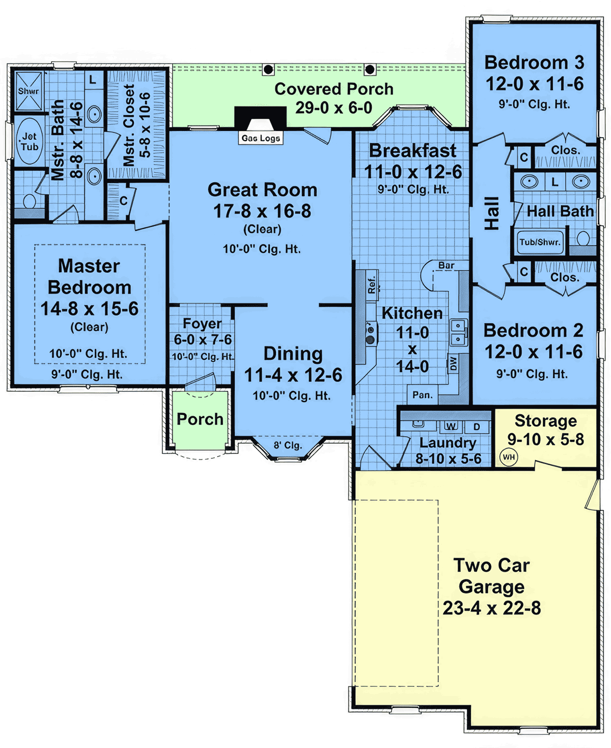 House Plan 102024 - Traditional Style with 1876 Sq Ft, 3 Bed, 2 B | COOLhouseplans.com