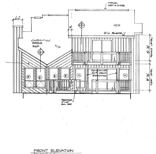 Exterior Elevations Scaled drawings of the front, rear, sides of the home. Information pertaining to the exterior finish materials, roof pitches and exterior height dimensions.