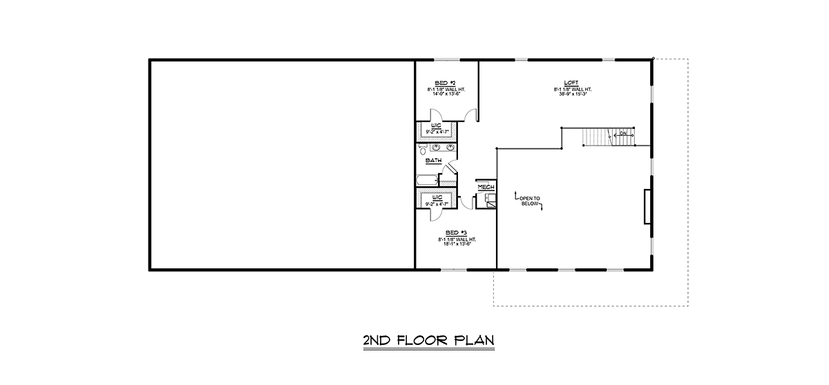 Barndominium House Plan 41848 with 3 Beds, 3 Baths, 4 Car Garage Level Two