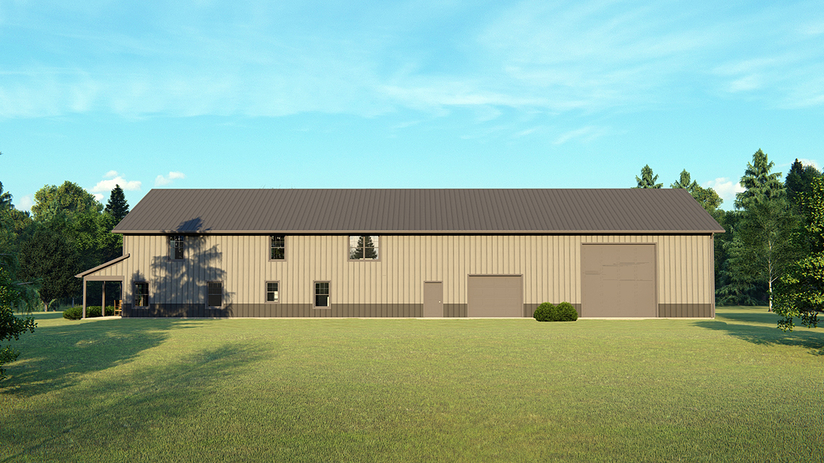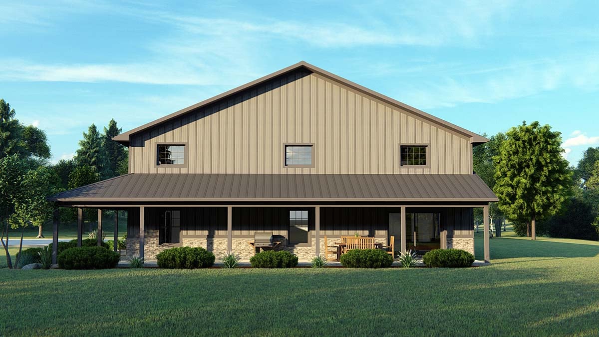Barndominium House Plan 41848 with 3 Beds, 3 Baths, 4 Car Garage Rear Elevation