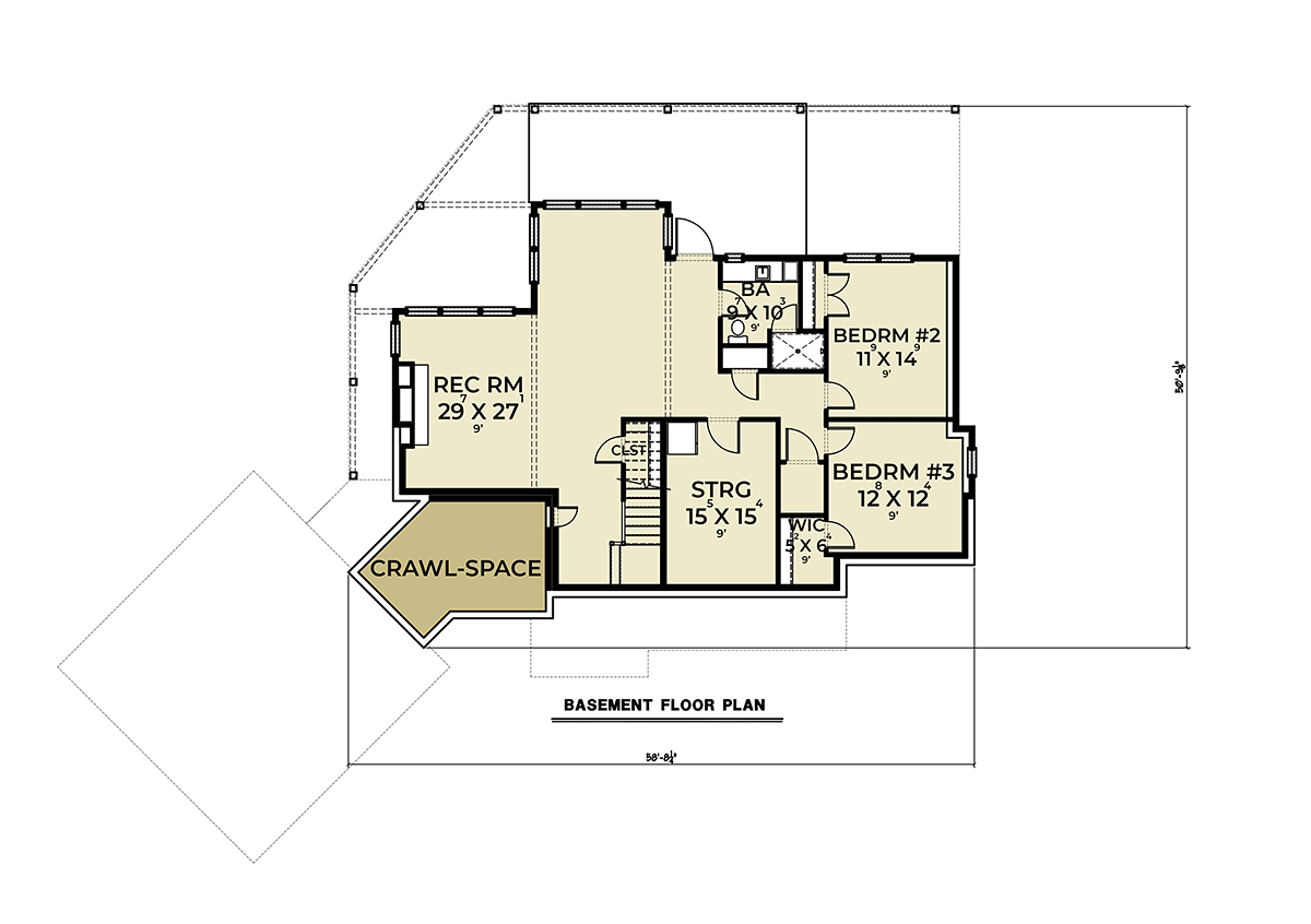 Coastal, Craftsman, Traditional House Plan 43605 with 3 Beds, 3 Baths, 2 Car Garage Lower Level