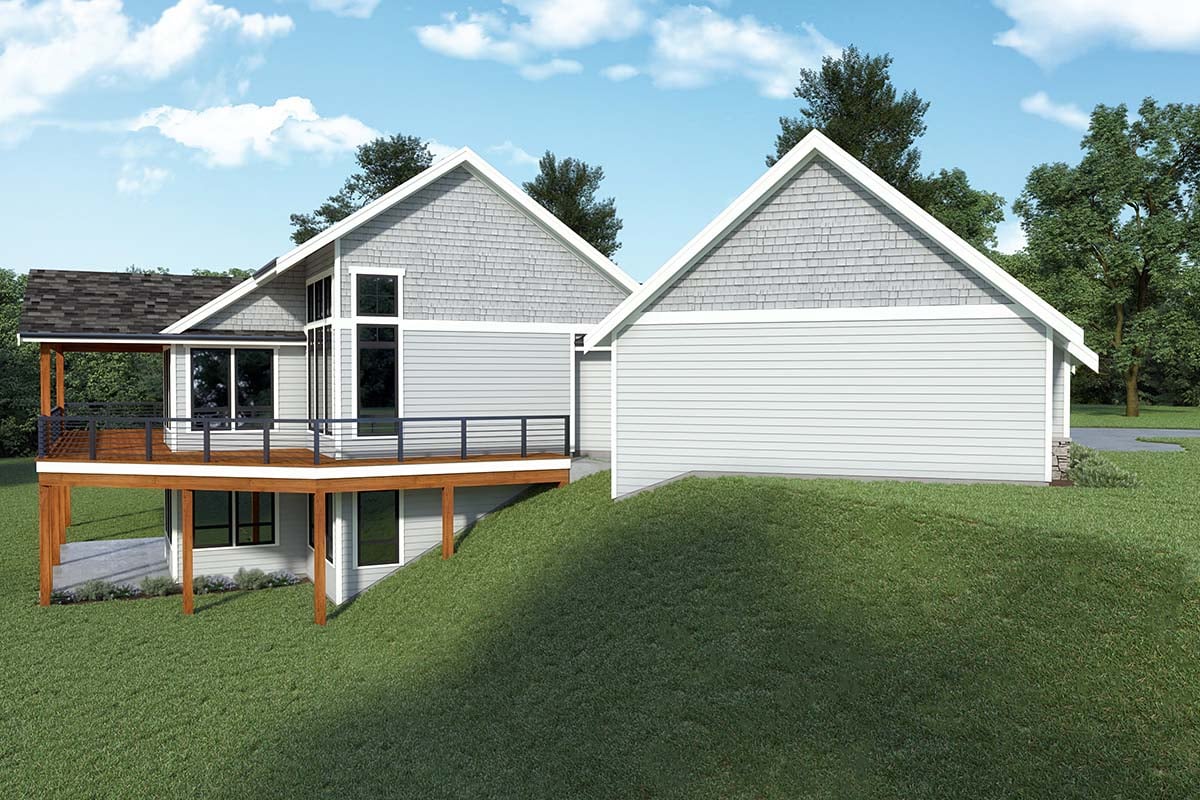 Coastal, Craftsman, Traditional House Plan 43605 with 3 Beds, 3 Baths, 2 Car Garage Rear Elevation