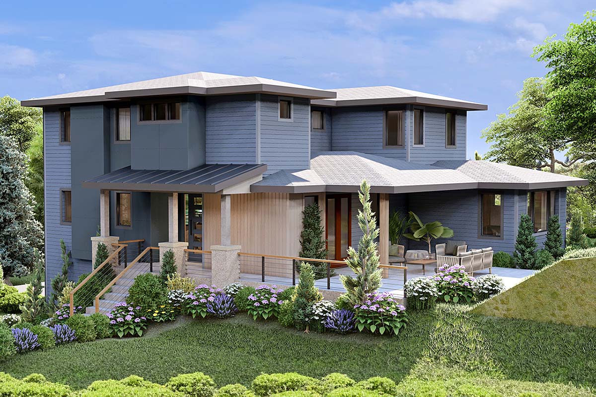 Artist's Rendering: An artist's drawing of the home, usually viewed from the front.
