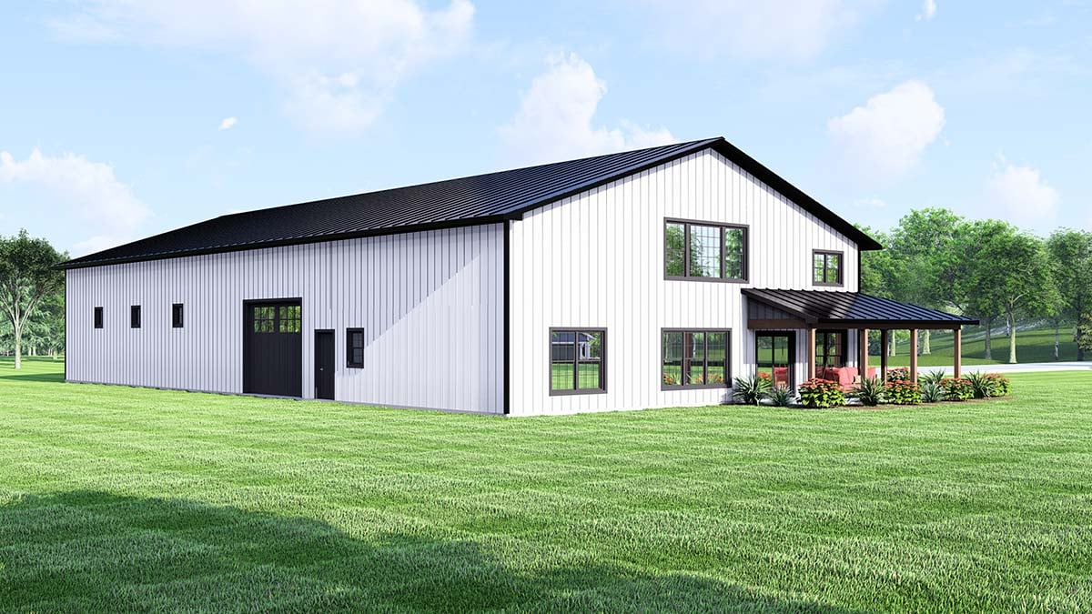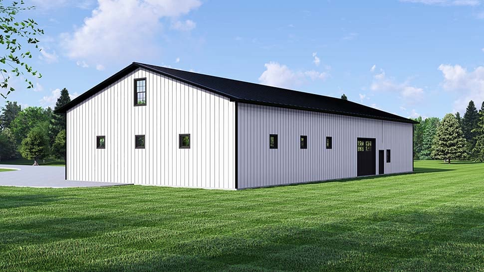 Barndominium, Country House Plan 43978 with 1 Beds, 2 Baths, 3 Car Garage Rear Elevation