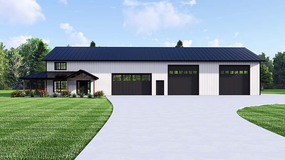 Barndominium, Country House Plan 43978 with 1 Beds, 2 Baths, 3 Car Garage Elevation