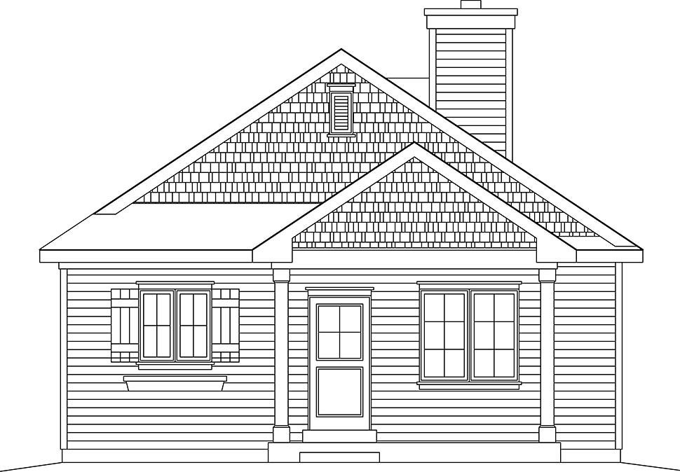 Bungalow, Cottage, Narrow Lot, One-Story House Plan 45179 with 3 Beds, 2 Baths Rear Elevation