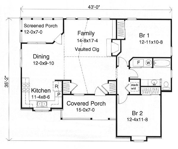 House Plan 49125 - One-Story Style with 1073 Sq Ft, 2 Bed, 1 Bath | COOLhouseplans.com