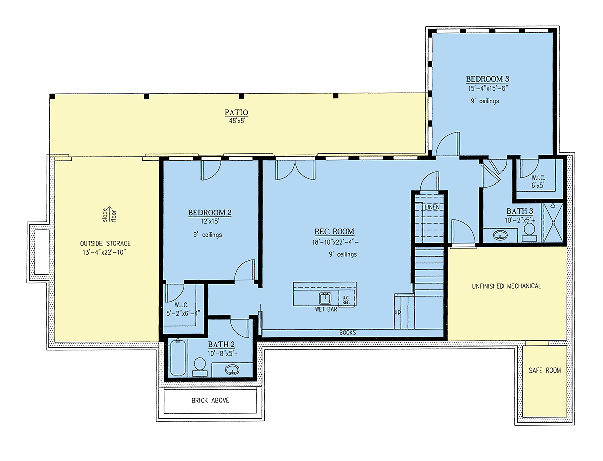 Country, Craftsman, Ranch House Plan 52013 with 3 Beds, 3 Baths, 3 Car Garage Lower Level
