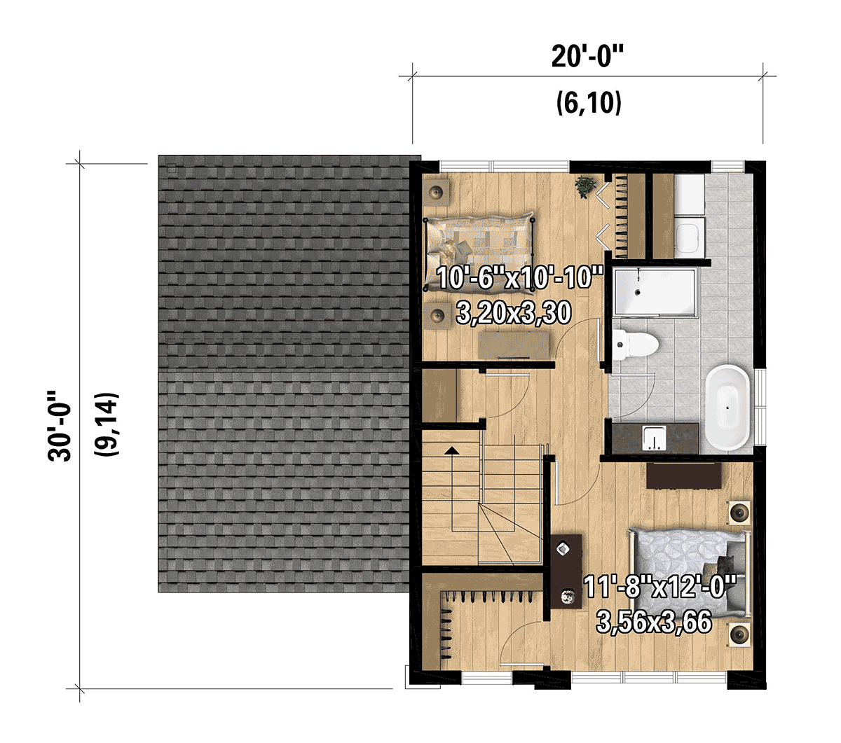 European House Plan 52845 with 2 Beds, 2 Baths Level Two