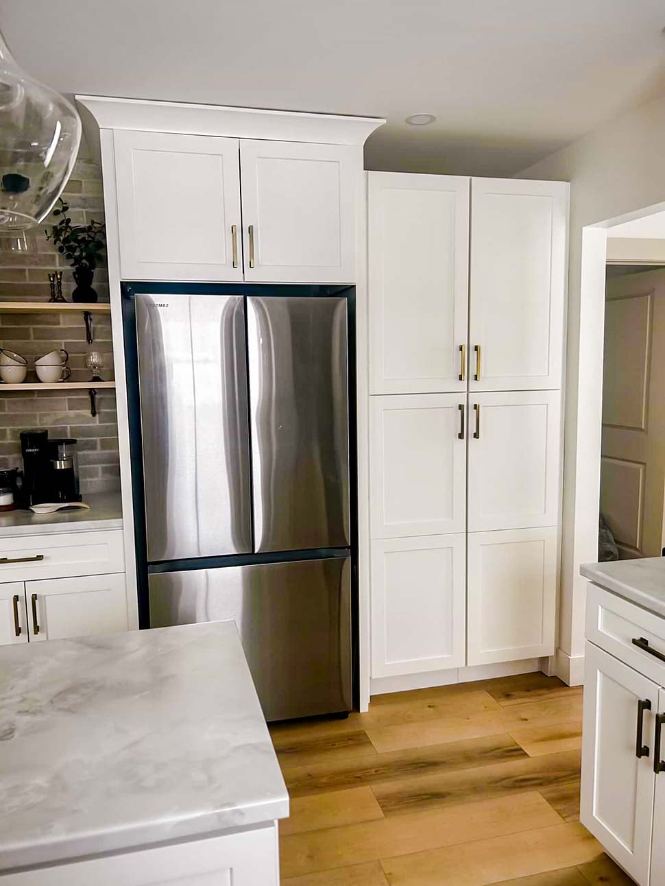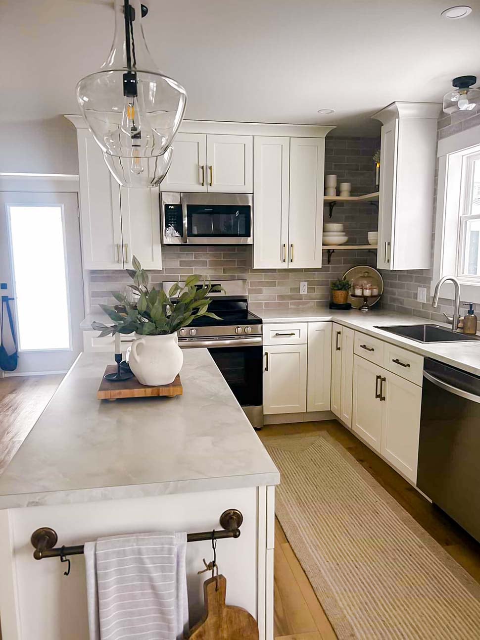 Q:How much walking space is between the kitchen island and cabinets?
