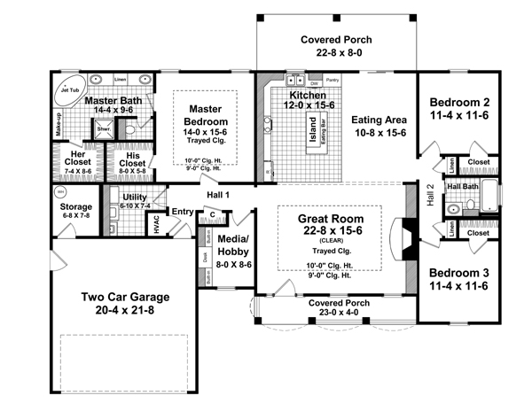 House Plan 59105 - Traditional Style with 1865 Sq Ft, 3 Bed, 2 Ba | COOLhouseplans.com