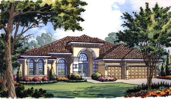 Contemporary, Florida, Mediterranean House Plan 63217 with 4 Beds, 3 Baths, 3 Car Garage Elevation
