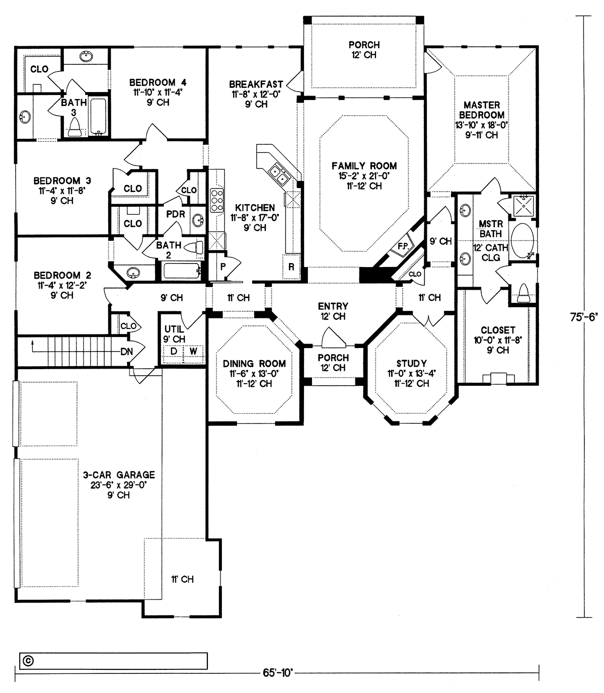 1/4" scale. Fully dimensioned from stud to stud for ease of framing. 2"x4" walls are standard. The detailed