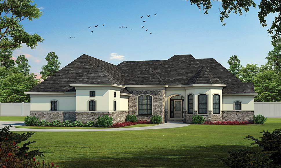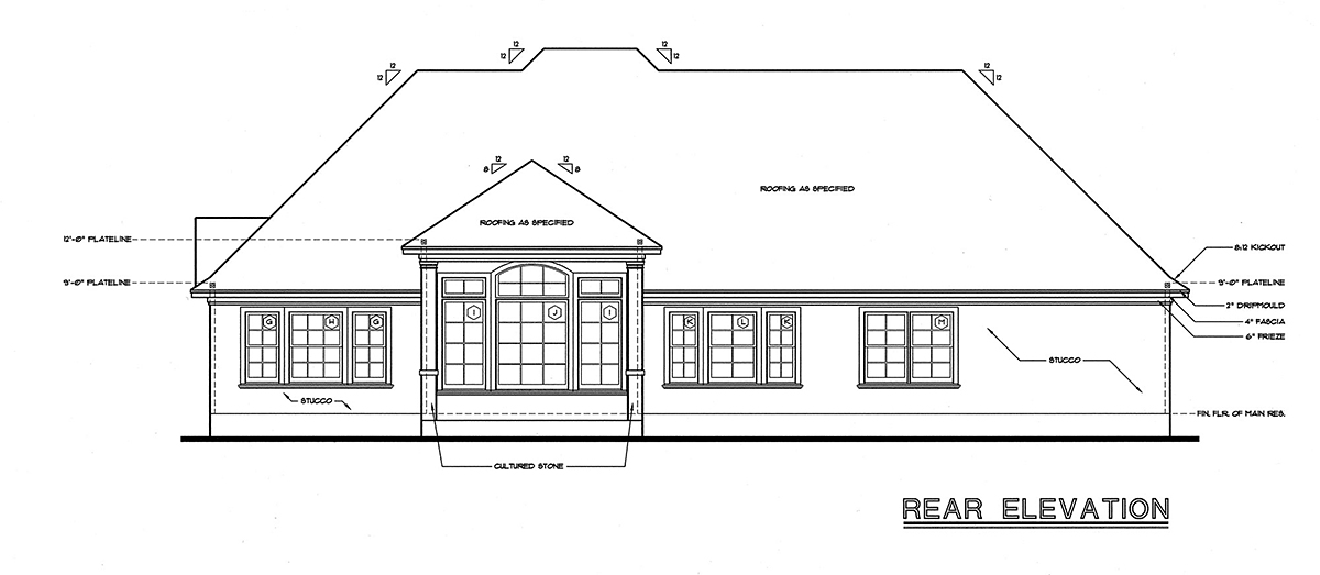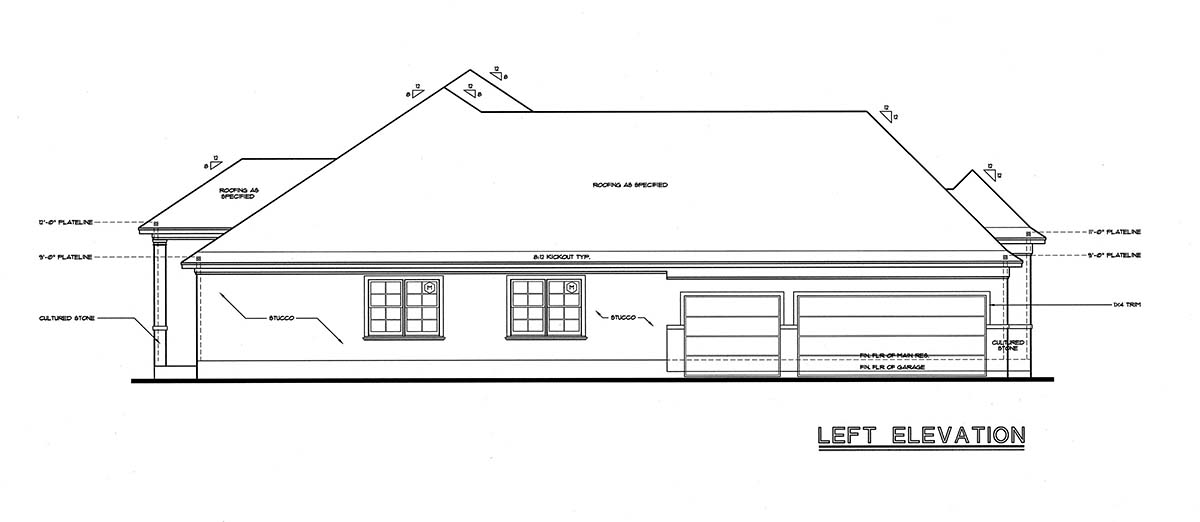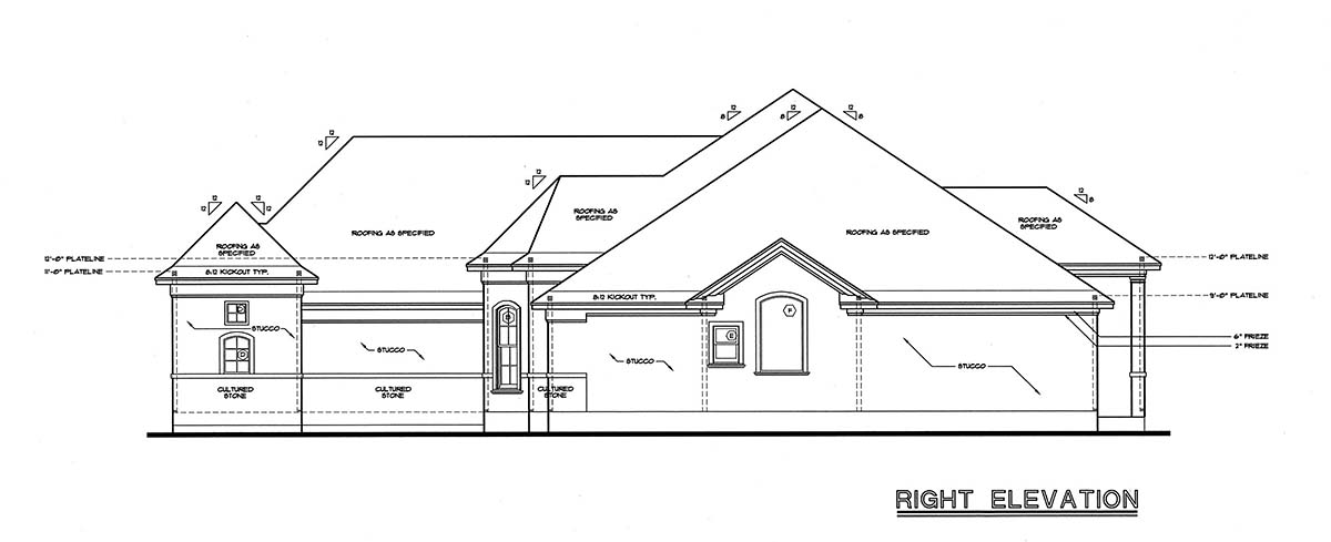A:The plan comes with all 4 exterior elevations, a slab foundation plan or you can purchase the basement foundation if you need it. It comes with a roof framing page. It doesn't come with a truss package. You will have to take it to a local manufacturer for them to figure out the trusses. The plans also come with floor framing, ceiling framing, sections, interior elevations, and electrical plans.