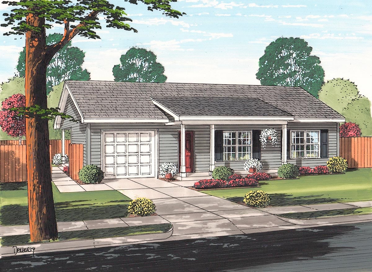 Cottage, Ranch, Traditional House Plan 74017 with 2 Beds, 1 Baths, 1 Car Garage Elevation