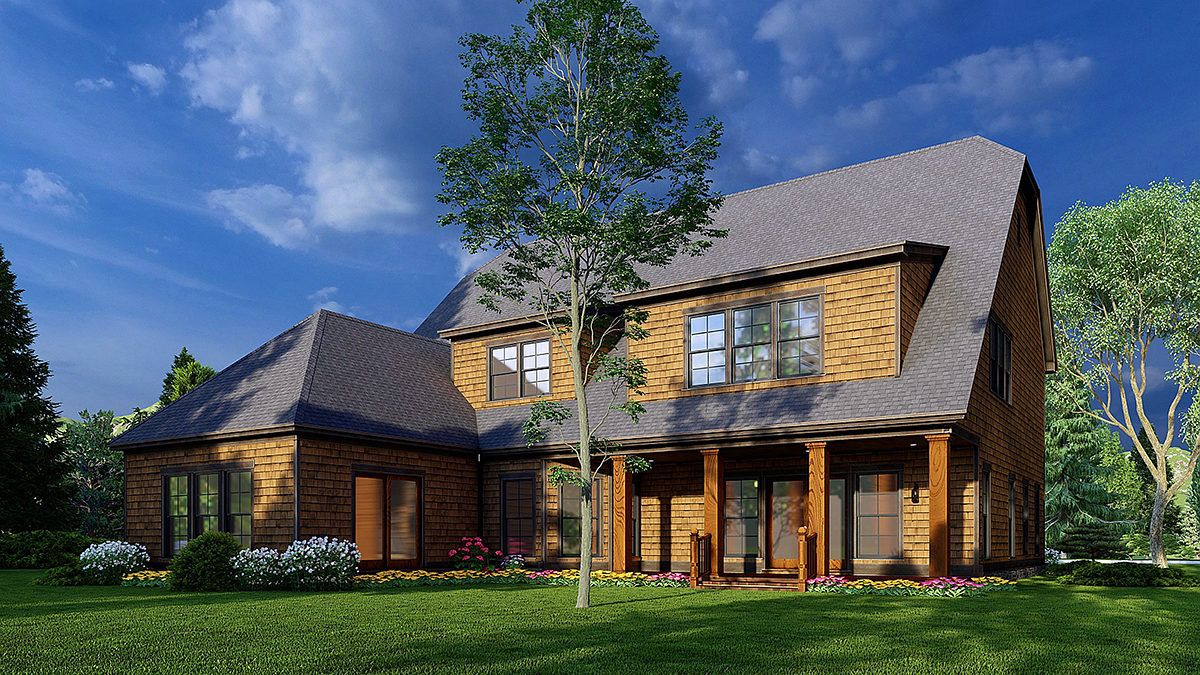 Bungalow, Craftsman, European, Traditional House Plan 82629 with 3 Beds, 4 Baths, 2 Car Garage Rear Elevation