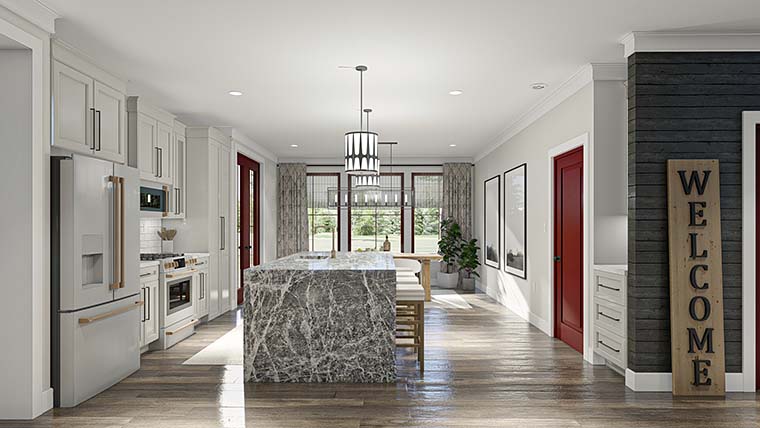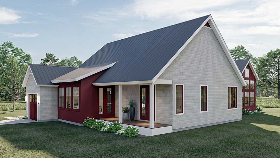 Exterior Elevations: Shows the front, rear and sides of the home including exterior materials, details and measurements.