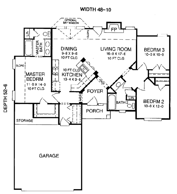 House Plan 93021 - Traditional Style with 1282 Sq Ft, 3 Bed, 2 Ba | COOLhouseplans.com