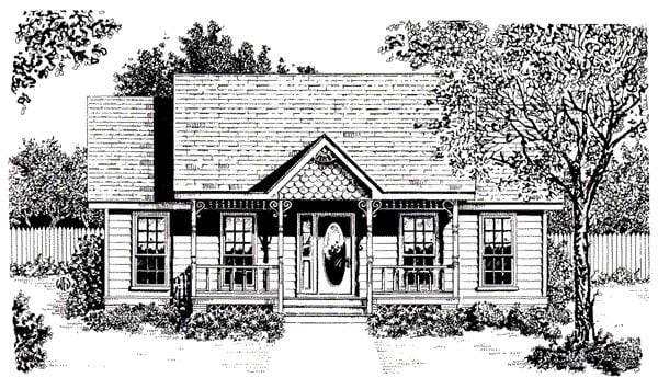 Country, Craftsman, Narrow Lot, One-Story House Plan 96598 with 2 Beds, 1 Baths Elevation