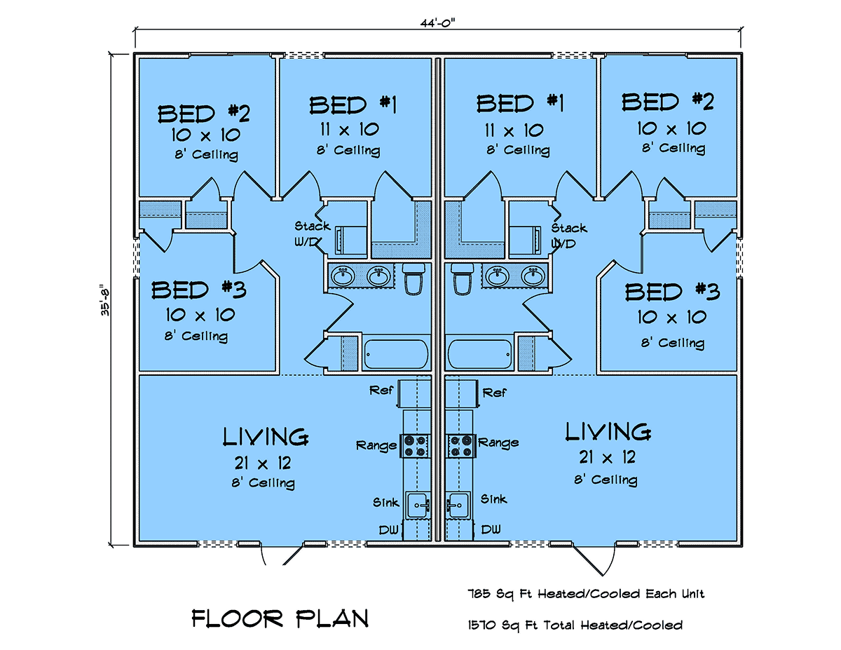 44'0" W x 35'8" D
