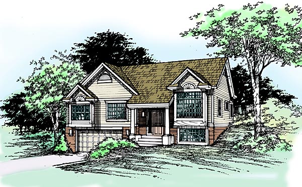 Split level house plans offer a more diverse look than a traditional two-story home. The split-level house plan gives a multi-dimensional, sectioned feel with unique rooflines that are appealing to many buyers. With the split level or split foyer style of design the front door leads to an entry landing that lies midway between the main and lower levels. Stairs lead either up to the main level, or down to the lower level. The split-level home plan makes great use of space and is most popular in northern states. Many split-level plans are similar in style to ranch house plans and have very little decorative elements.